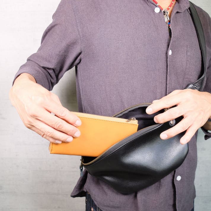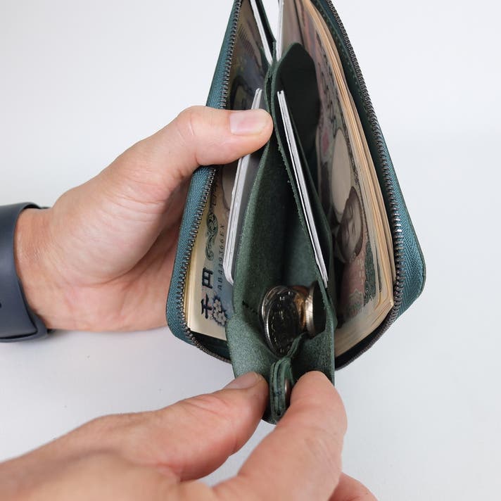スムーズに開くL型ファスナー。中の物が落ちることはありません。