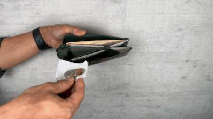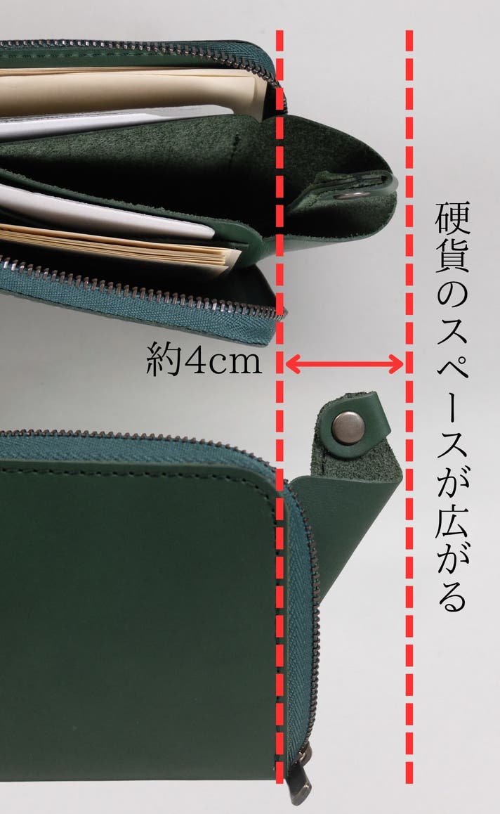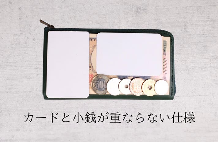 薄さの秘密は重ならない。極力小銭とカードが重ならないよう設計しております。薄さの秘密は重ならない