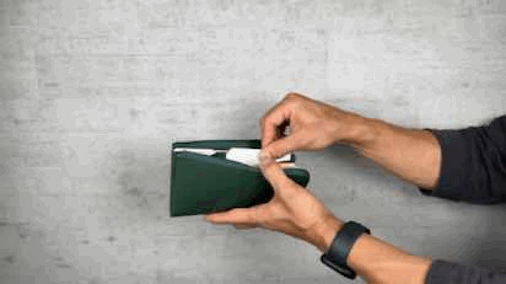 レジでもたつかない。引っ張ることにより開口部が広がるのレシートも一緒に入ります。